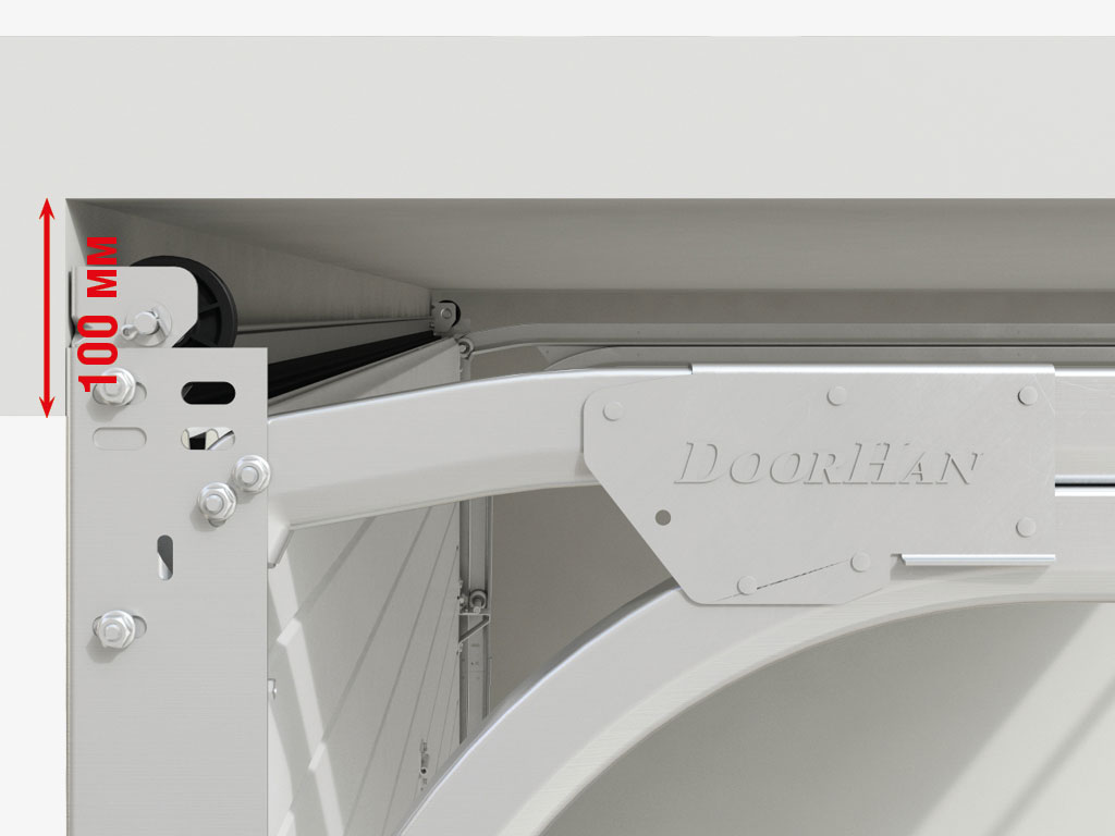 Если потолок в гараже выполнен со скосом по ширине помещения, то замер высоты притолоки в данном случае необходимо проводить по точке, отстоящей на расстоянии 100 мм от края проема.