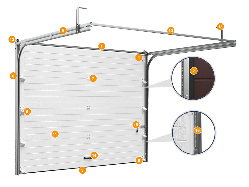 Полотно из энергоэффективных сэндвич-панелей толщиной 40 мм и усилением под внутренние петли и боковые опоры.Комплект направляющих и угловых стоек из стали толщиной 1,5 мм обладает повышенной прочностью, имеет все необходимые для монтажа перфорации.Оцинкованные пружины растяжения (система «пружина в пружине»). Количество циклов балансировочного механизма — не менее 25 000.Ручка эргономичной формы выступает изящным декоративным дополнением к дизайнерскому исполнению полотна ворот.Тип подъема — низкий, обеспечивает возможность установки конструкции ворот практически в любое помещение.Дополнительная комплектация