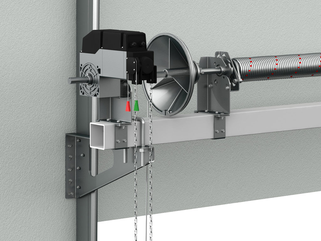 Система обогрева контура проема представляет собой силовой каркас, выполненный из алюминиевого профиля, внутри которого размещается греющий ПЭН-провод, что позволяет избежать примерзания полотна ворот к проему. Помимо этого по нижней кромке полотна ворот также пускается греющий кабель. Таким образом получается замкнутый греющий контур по всему периметру проема.Ручной цепной привод устанавливается на промышленные ворота всех типов подъема, служит для подъема/опускания полотна ворот вручную.Механическая задвижка позволяет запирать полотно изнутри помещения. Отличается простотой и надежностью. -