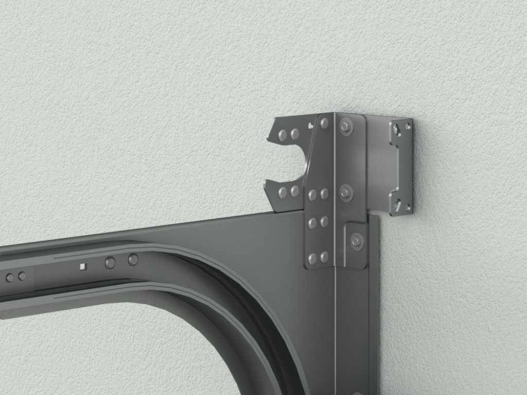 Крепление секционных гаражных ворот на заплечики к стенам происходит при помощи анкеров или саморезов. При этом ось крепления должна проходить строго параллельно краю проема ворот и отстоять от него на расстояние 45 мм. Места крепления ворот играют важную роль. Так, если обрамление проема выполнено из каких-либо материалов, делающих крепление невозможным, следует увеличить отступ и, соответственно, ширину проема ворот, а также сдвинуть ручку ближе к центру.