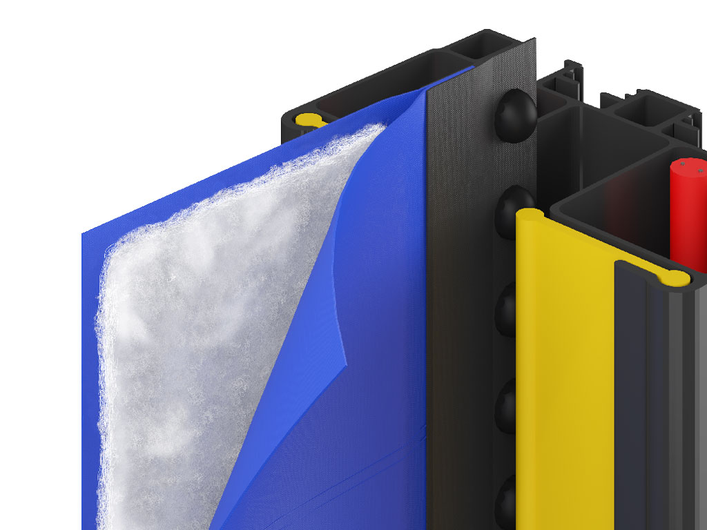 Полотно из двух слоев кордовой ткани с полиуретановым покрытием из высокопрочного волокна, расстояние заполнено теплоизоляционным материалом.Корпус блока управления из нержавеющей стали: размер — 250 × 490 × 140 мм; степень защиты — IP 54 Напряжение питания — 220-240 В / 50-60 Гц; мощность -1,5 кВт; степень защиты — IP 54.Фотоэлементы устанавливаются на высоте 500 мм от уровня пола (есть возможность установить дополнительные как опцию).Дополнительная комплектация