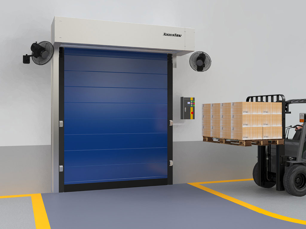Скоростные ворота FHSD предназначены для перекрытия проемов морозильных помещений, куда необходим частый доступ людей и техники.
