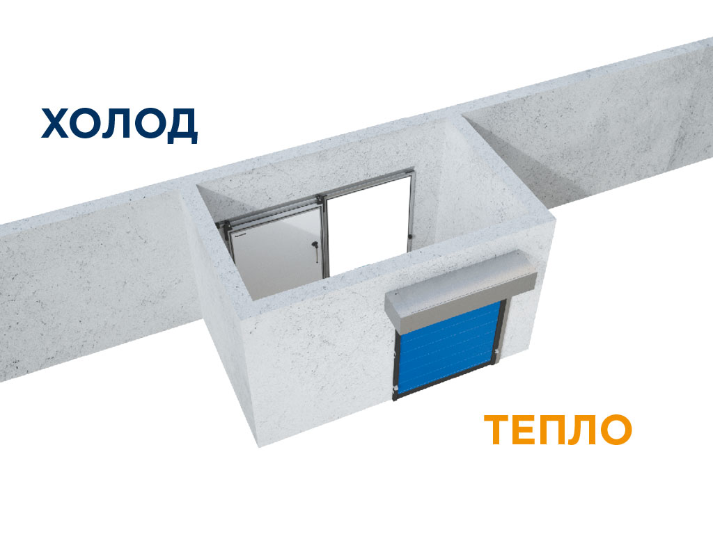 Ворота для морозильных помещений серии FHSD возможно эксплуатировать, только с противоположной стороны морозильной камеры (снаружи).