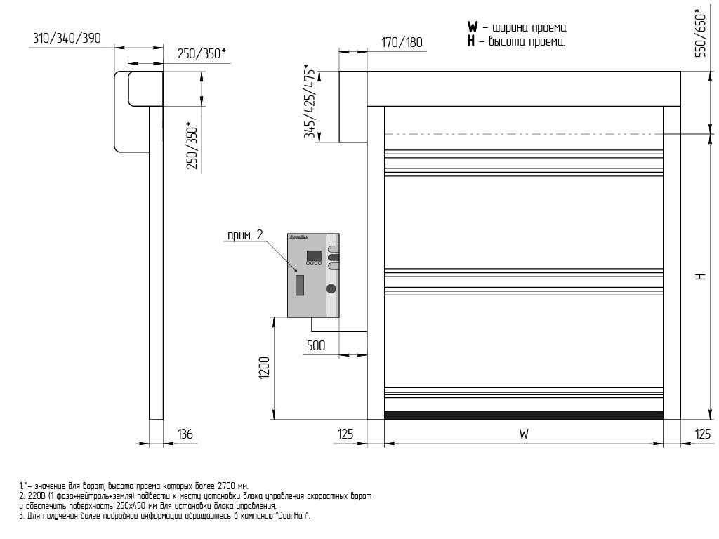 Схема установки скоростных рулонных ворот SPEEDROLL SDA.Паспорта и сертификаты