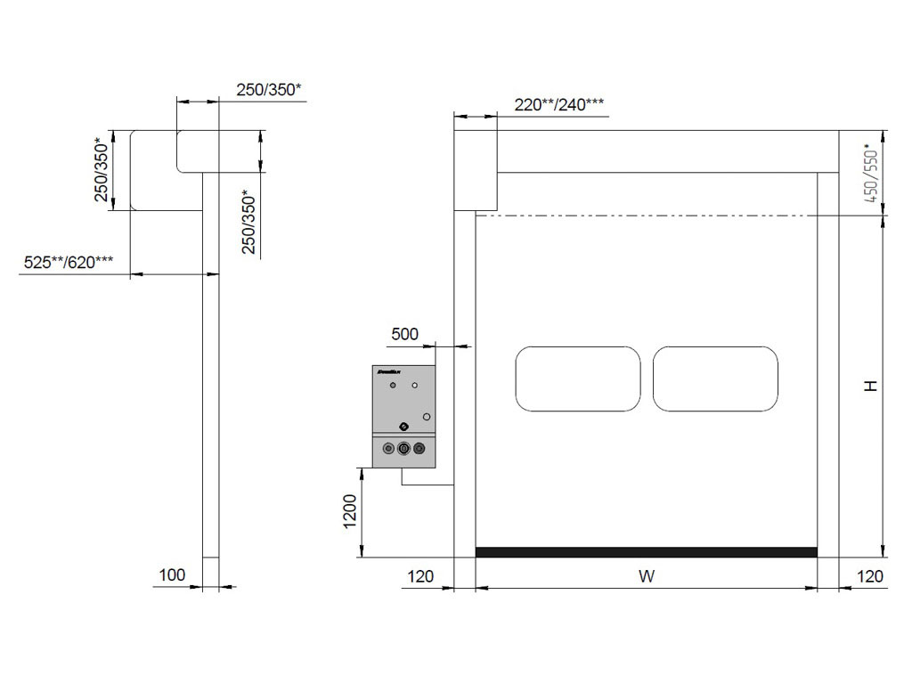 Схема установки скоростных рулонных ворот SPEEDROLL SDI (привод сбоку);